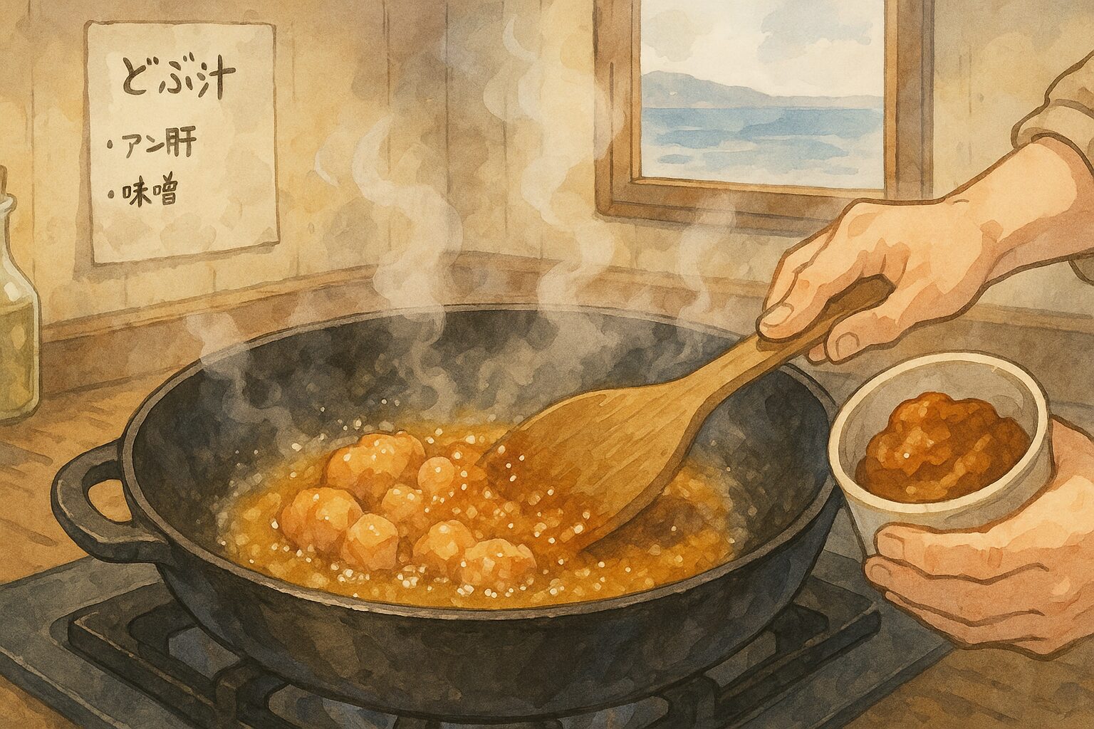本格的な「どぶ汁仕立て」に挑戦するなら、あん肝を弱火でじっくり炒めて旨味を最大限に引き出すこと。